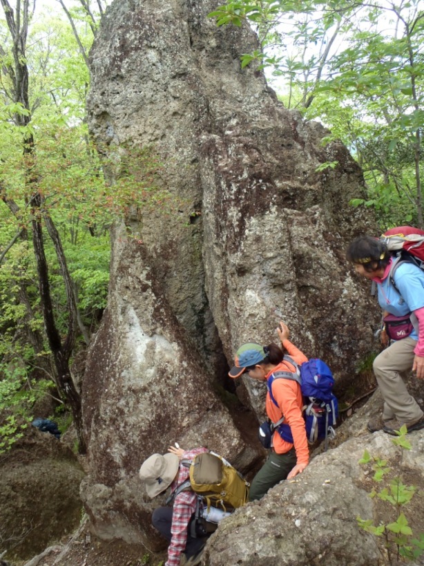 歩き始めて直ぐに出てくる三番岩A峰。慣れないので慎重に。