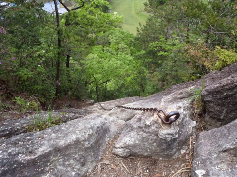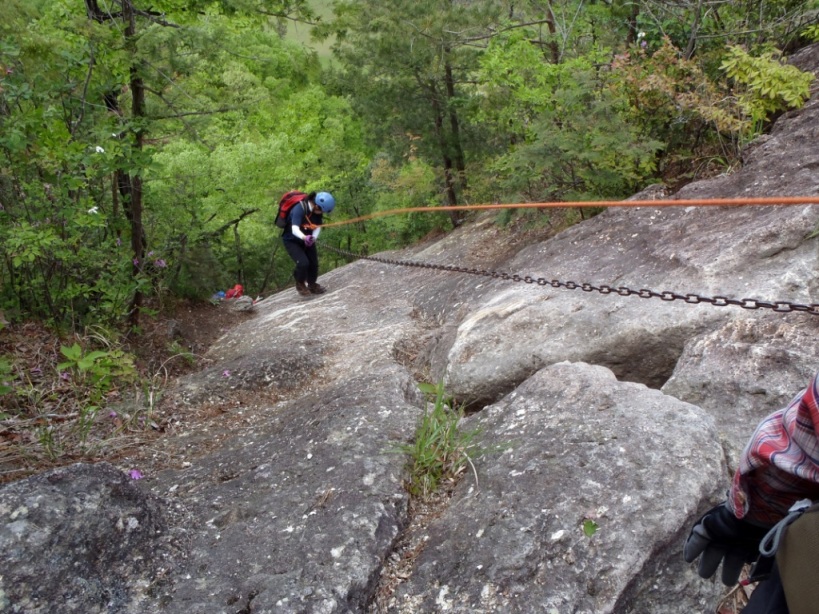 三段目のクサリの下り。岩の向こう側へ渡ります。