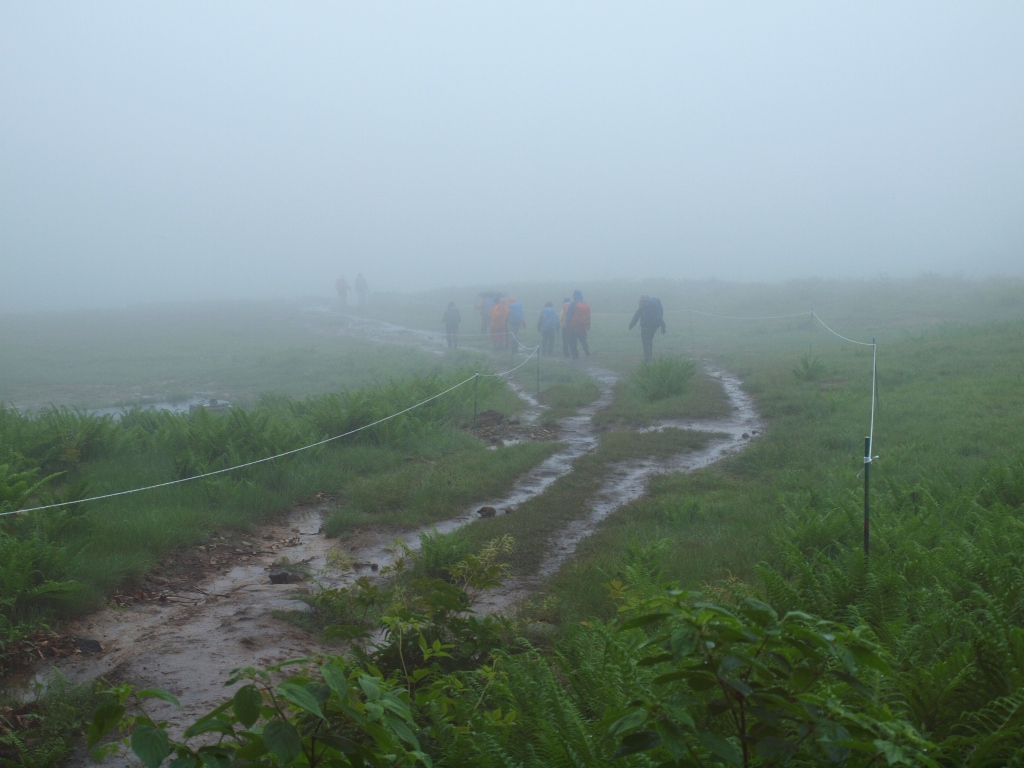 翌日は生憎の天気。カッパに身を包み湿原に最後の別れを