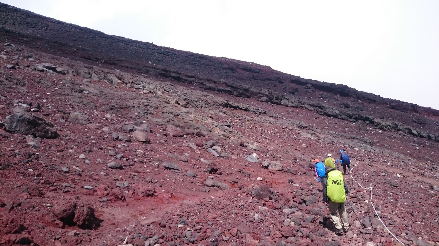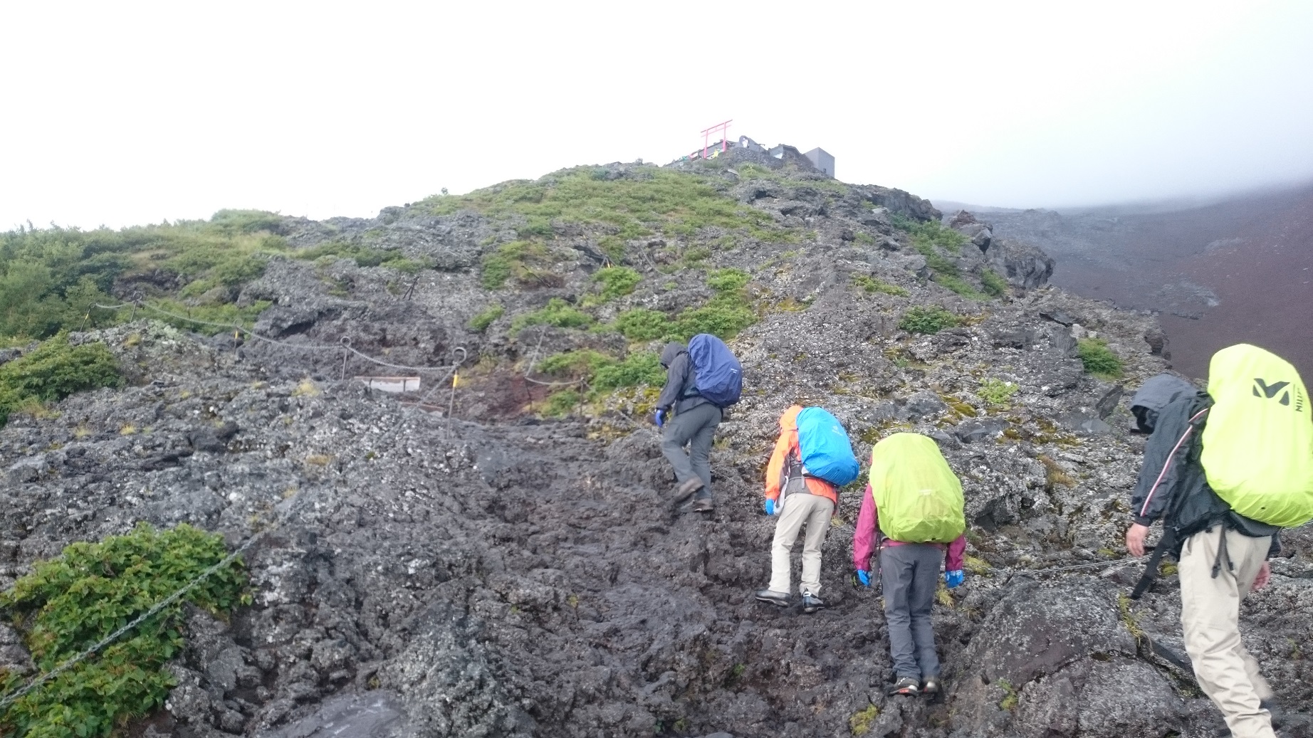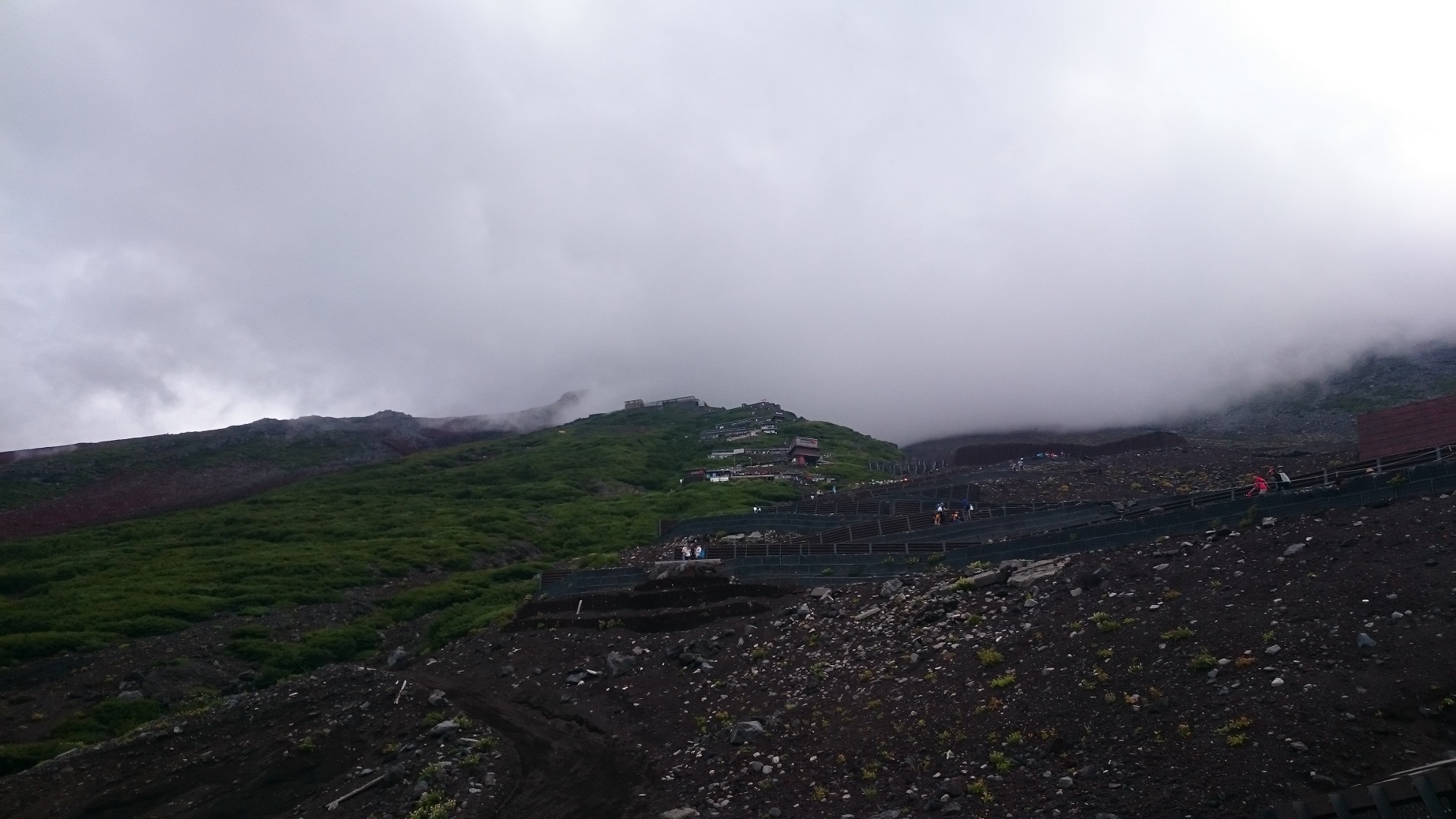 6合目を過ぎても山頂はガスに包まれまだ見えない