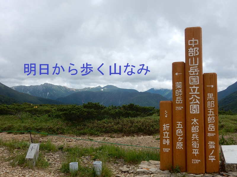 コース 【1日目】富山駅5:40・・・折立7:50・・・太郎平小屋12:50・・・15:30薬師沢小屋(泊)