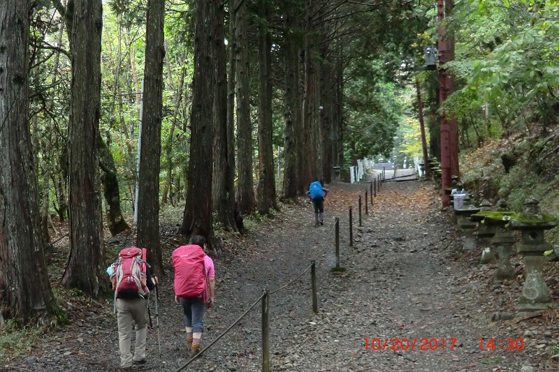 10月20日~21日 七面山~八紘嶺 未分類 2017.10.222017.12.22 【コース】20日 下部温泉駅=タクシー=羽衣・・・表参道登山口・・・神力坊・・・中適坊・・・清雲 坊・・・敬慎院 21日 敬慎院・・・七面山・・・喜望峰・・・八紘嶺・・・梅ヶ島温泉=バス=静岡駅 【参加者】4名 登山開始 お万の方像と白糸の滝 壱丁目石 標高差1000mを登るので大変 肝心坊 大勢の七面山詣での方々 修行の登山? 不思議な幹 青雲坊 木々の間からの眺め 和光門 参道も終盤 敬慎院・入り口に近づくと扉を開けて迎えてくれました サルオガセが沢山 七面山山頂 雨が降ってきました 八紘嶺山頂 倒木を乗り越えて・・・これ以上はカメラもしまってひたすら歩く。