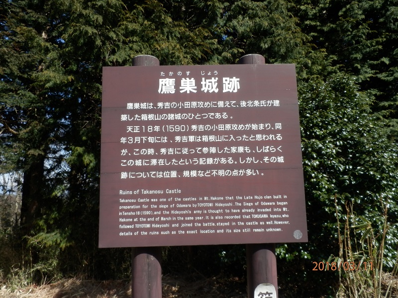 2018/03/11 箱根・湯坂路 未分類 2018.03.122018.05.18 【参加者】8名 【コース】箱根湯本駅・・・湯坂時登山口・・・湯坂城跡・・・浅間山・・・鷹巣山・・・湯坂路入口・・・箱根ドールハウス美術館前・・・六道地蔵・・・石仏群と歴史館・・・箱根湯本駅 箱根湯本から歩きます 商店街は朝から賑やか 湯坂路入口緩やかに登ります OLYMPUS DIGITAL CAMERA 浅間山で 天気は上々 寒椿が大きい 陽気に誘われて大合唱 湯坂路コース出口 駒ケ岳が大きい 今が旬?の花粉が飛んでるよ~ 見つけた!フキノトウ 石仏群通りの「25菩薩」 大岩に直接彫ってあるんです 六道地蔵穏やかなお顔に思わず手を合わせる。 精進池に駒ヶ岳が写ルンです。 「石仏群と資料館」今日の湯坂路散策はここまで。