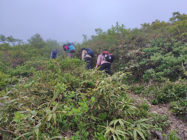 2025/5/31岩手・七時雨山 埜歩歩山行 2025.05.31 岩手県八幡平市にある山、登山家・岩崎元郎氏による「新日本百名山」に選ばれている。日本百低山、東北百名山。均整のとれた美しいピラミッド型の山容、岩手山、早池峰山とともに「岩手三山」に数えられる。美しい響きである山名は、日に何度も天候が変わることが由来とされる説がある。登山者が少ない牧野コースを往復。リーダー大澤辰雄 参加5人 曇り コース:牧野コース登山口…七時雨山南峰1063m…七時雨山北峰(往復) 牧野コース登山口 見晴台 南峰直前の登り 七時雨山南峰1063m 七時雨山北峰1060m