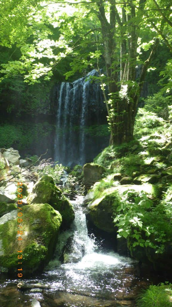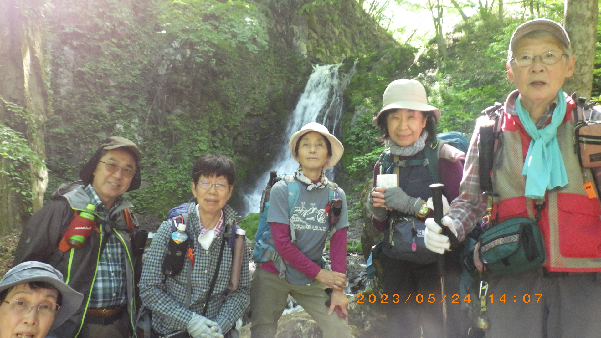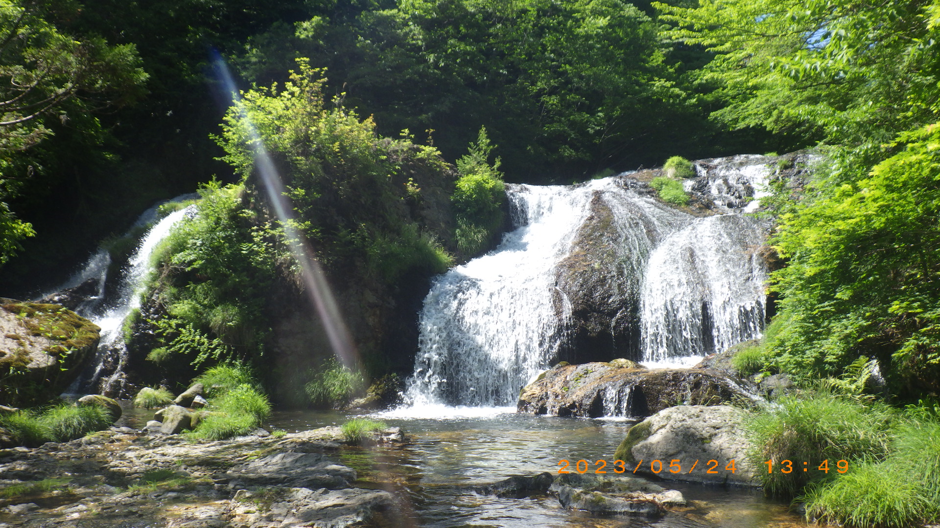2023/5/24(水) 日光・大山1158m 埜歩歩山行 2023.05.242025.06.30 リーダー沖あけみ 参加7人 晴 ルート:JR日光駅前バス停→(東武バス霧降高原行)→霧降高原9:45……合柄橋……11:10大山山頂・昼食12:00……猫の平・休…13:22マックラ滝13:30…13:50玉簾の滝14:00…14:10丁子の滝14:15…14:45霧降の滝入口…14:55霧降の滝観瀑台15:07…15:15霧降の滝バス停・解散。 大山山頂 猫の目平めざす マツクラ滝 わさび 玉すだれの滝 霧降の滝