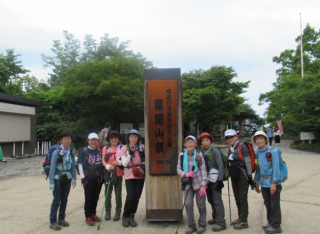 リーダー阿部清美 参加8人 晴れ コース:高尾山口駅集合7:55—9:30草戸山364m9:35—10:00榎窪山420m—三沢峠—10:30泰光寺山475m—10:37西山峠—10:48東山—10:55入沢山490m11:09—11:36中沢山494m11:39—11:50高岩山11:52—12:06コンピラ山514m昼食12:31—12:43大洞山536m—13:14大垂水峠—14:22城山670.4m15:01—15:55高尾山16:04—(6号路)16:54琵琶滝—17:08清滝駅解散