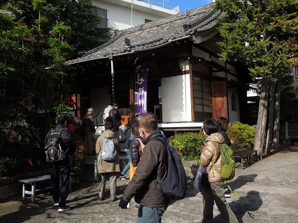 リーダー大澤辰雄 参加17人 ルート:集合・メトロ南北線白金高輪駅→ 覚林寺(毘沙門天)→ 瑞聖寺(布袋尊)→ 妙円寺(福禄寿、寿老人)→大円寺(大黒天・五百羅漢)→蟠竜寺(弁財天)→滝泉寺・目黒不動尊(恵比寿)→JR山手線目黒駅前(解散)
