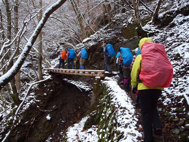 2016年3月13日(日)奥多摩、川苔山 未分類 2016.03.132016.04.04 前日降った雪で山は冬景色 何か所もある木橋が滑る、すべる 百尋ノ滝は勢いよく流れ落ちていました 冷たい水に落ちないように慎重に、さらに山頂を目指します 山頂までもう一息 幻想的な風景です 記念撮影、12名参加です 下山です かわいい雪だるま作っちゃいました 麓の雪はもう消えていました