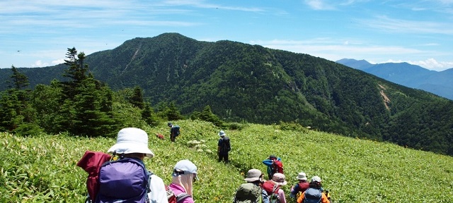 2015年8月1~2日 5名参加 開通した北陸新幹線を利用、1日目はJR大野駅からタクシーで岐阜県と福井県の県境、温見峠へここから能郷白山(1617m)を往復し、タクシーでJR勝原駅前民宿泊。2日目は、勝原からシャクナゲ平~荒島岳(1523...